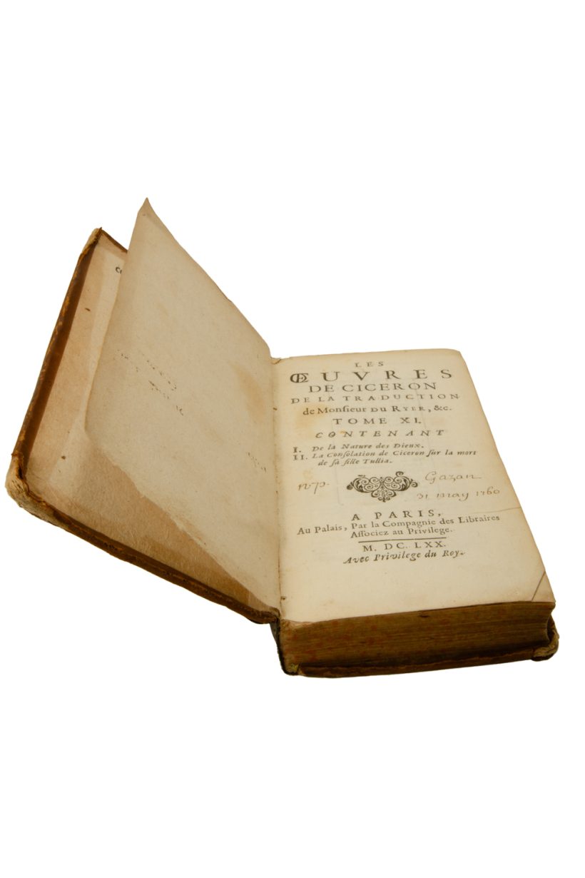 De la traduction de Monsieur du Ryer, &c. Tome XI contenant I. De la Nature des Dieux II. La Consolation de Cicéron sur la mort de sa fille Tullia