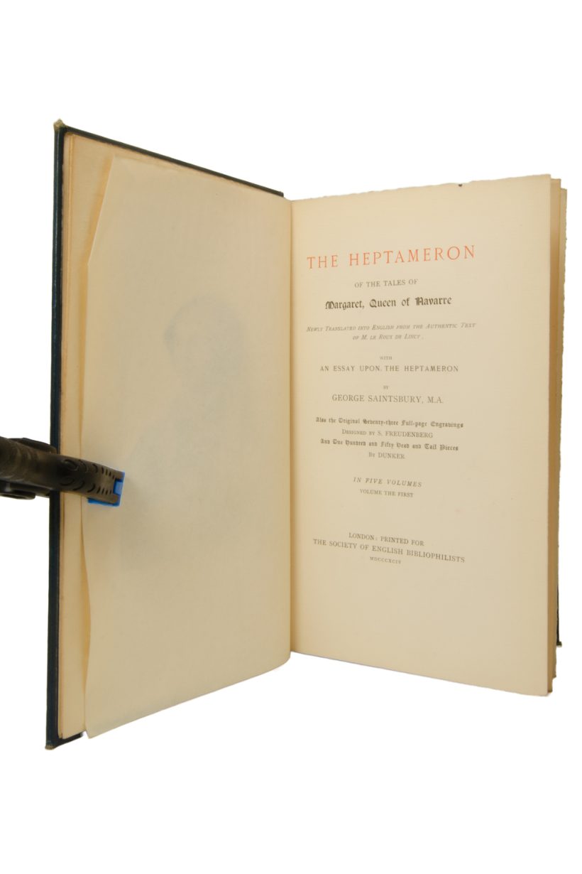 Newly Translated into English from the Authentic Text of M. Le Roux de Lincy with an Essay upon the Heptaméron by George Saintsbury. Also the Original Seventy-three Full-page Engravings Designed by S. Freudenberg and One Hundred and Fifty Head and Tail Pieces by Dunker. In Five Volumes