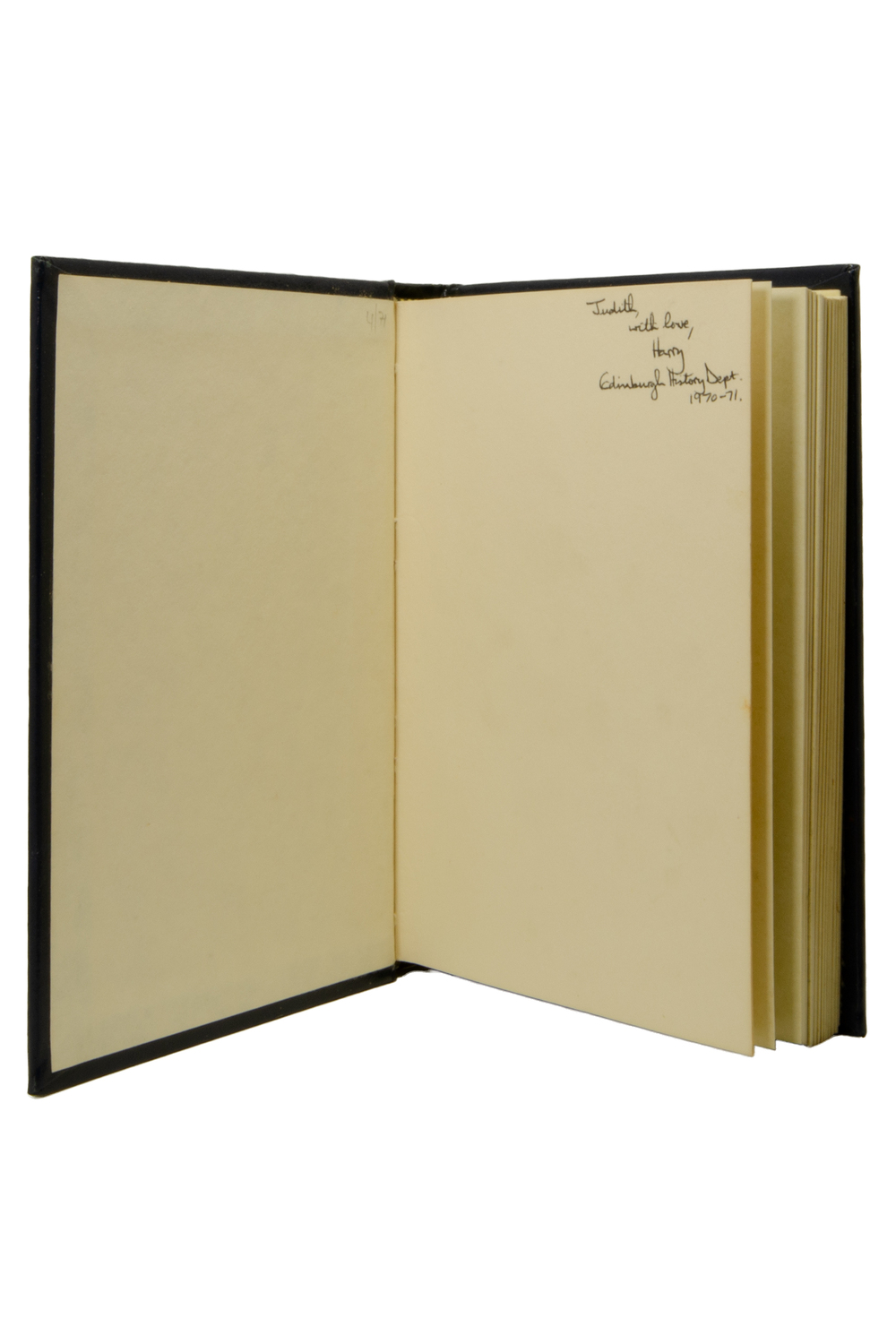 Leather-bound with gold embossed decorations on covers and on spine. In protective hardboard cover. Gift inscription to previous owner on front end sheet