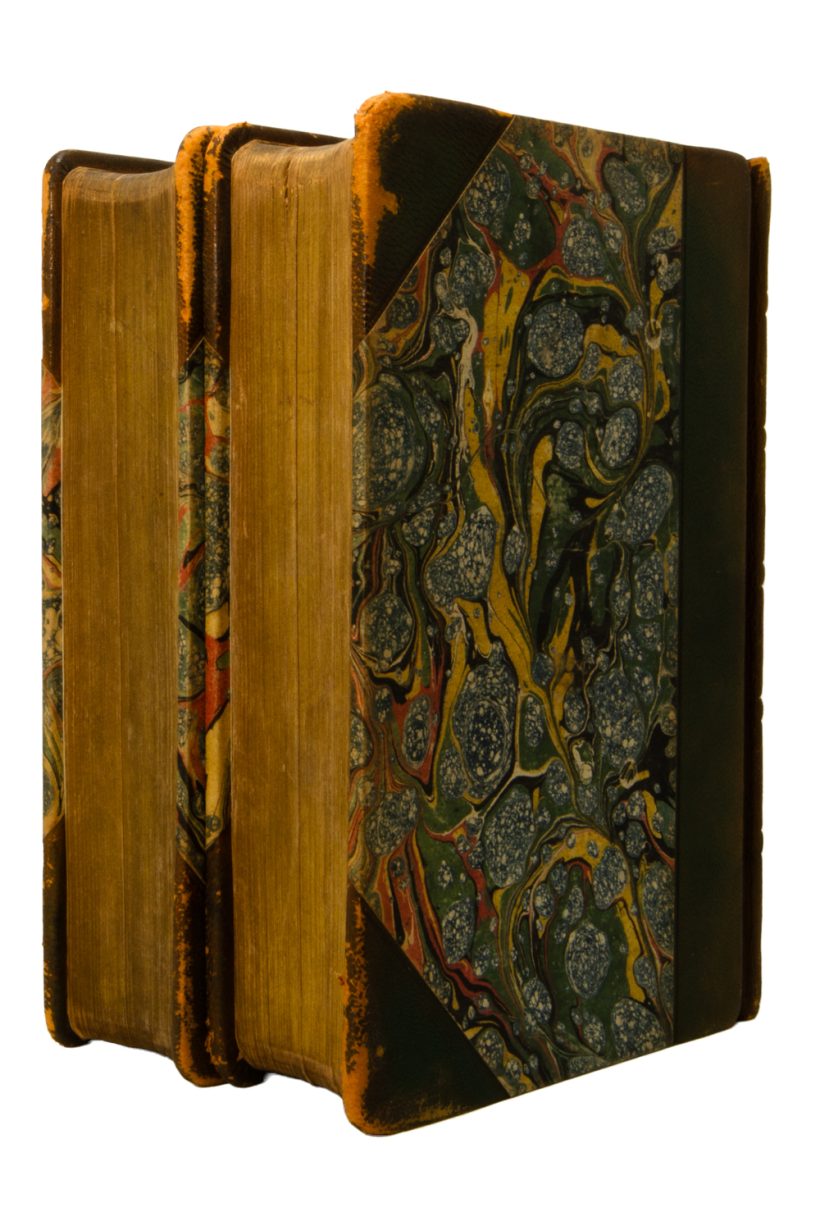 Condition: Very good. Quarter-leather bound with leather corners which are a little edge-worn. Gold-embossed lettering on spine. Gilded text blocks. Marbled covers. Excellent condition.
